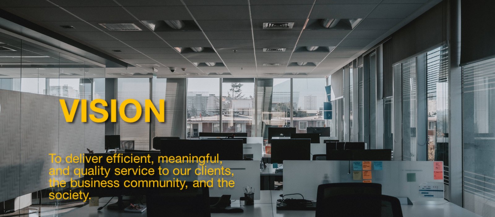 We pride ourselves in our flexibility with each of our engagements. Our vision is to be the unparalleled service provider in the arena of personalized and quality business support services, particularly in the areas of accounting, audit, business consulting, business processing, and tax advisory services.